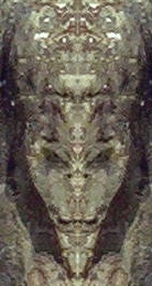 la faccia intera, invece, è ottenuta elaborando la foto della roccia, come se si fosse messo uno specchio sulla metà del viso che si vede. E anche questa la trovo stupefacente.
