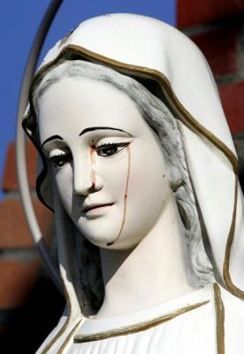 Una lacrima rossa scorre sul volto di una statua della Madonna a Sacramento, in California. Il "miracolo", come molti lo hanno definito, si è verificato nella chiesa vietnamita dei Martiri cattolici, nella città della California.