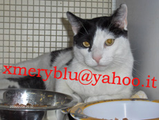Mery.. animalista indipendente e no-profit. Se vuoi aderire ad una mailing list per aiutare animali senza casa a trovarne una puoi scrivere un'email con oggetto ML al mio indirizzo: xmeryblu@yahoo.it Riceverai poche email alla settimana. Grazie
