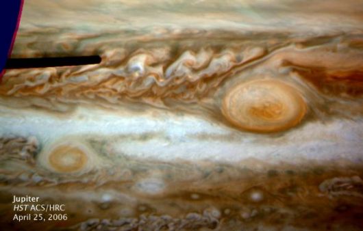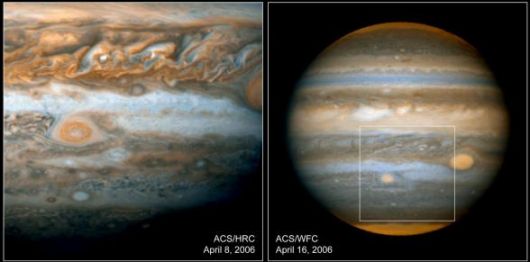 Le immagini catturate dal telescopio della Nasa "Hubble" che mostrano la superficie del pianeta Giove. Le foto rivelano una gigantesca tempesta del diametro di due volte la Terra. Gli esperti ritengono che il fenomeno è frutto del cambiamento climatico in atto nel sistema solare