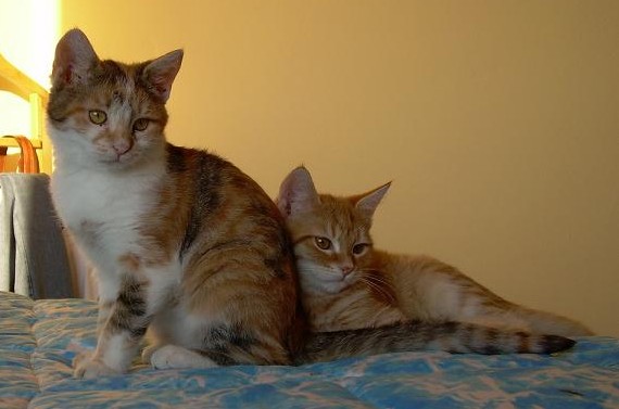 Lui rosso, bellissimo, truccato di bianco, lei tricolore-marmorizzata, occhioni da gatta.
