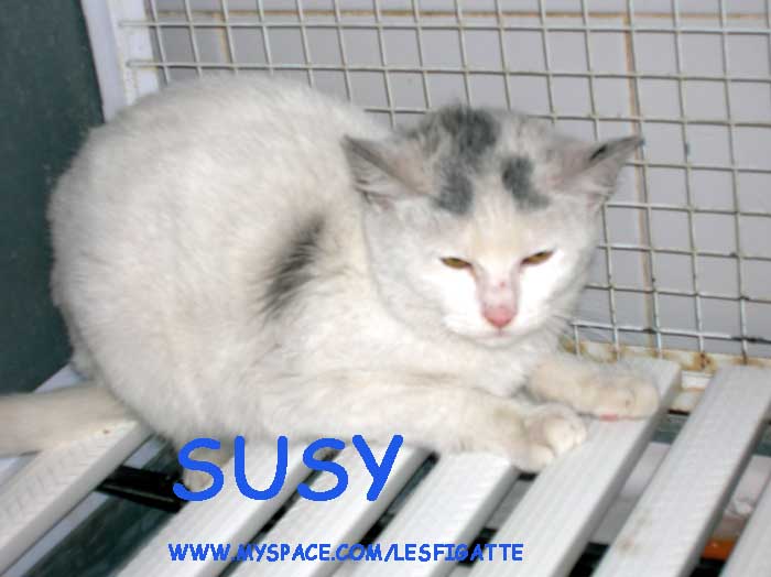 La piccola Susy è rimasta senza la mamma molto presto, investita quando lei aveva solo un mese e mezzo. Sola e impaurita vagava in un cortile dove nessuno si occupava di lei, nonostante i suoi miagolii per farsi sentire fossero strazianti. Affamata e sola è riuscita a sopravvivere grazie alla sua grande voglia di vivere. Non voleva morire e non voleva stare sola. Tramite un giro di persone siamo venute a conoscenza della sua presenza e l'abbiamo presa in una sera piovosa. Lei sembrava un pulcino impaurito. Bagnata e affamata non smetteva di guardarci con quel suo sguardo che sembrava volesse solo dirci "grazie". Lo sguardo di un cucciolo è difficile da dimenticare, ed è difficile non pensare a quanto soffrano queste creature quando si trovano sole senza che nessuno le aiuti. Susy gattina bianca con qualche macchietta nera, adesso si trova a Torino presso una pensione, ha poco meno di 4 mesi ed ha una gran voglia di uscire da quella gabbia. Sporca nella sua cassettina e ha un carattere dolce anche se è ancora un po' impaurita. Chi vuole accoglierla per sempre e donarla tutto l'amore di cui ha bisogno? Vi assicuriamo che è molto più bella di quanto non si veda in foto ed è anche più piccolina. Un gattino di 4 mesi è ancora un cucciolo che può adattarsi perfettamente. Agli adottanti si richiede un controllo pre-affido, firma documento di adozione Per info e adozione: Miriam 347/1007782 (se non rispondo riprovate, non mandate sms) oppure via mail vegetariana77@gmail.com Laura 338/5378900 (chiamare SOLO al MATTINO) oppure via mail laubett@yahoo.it