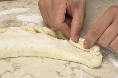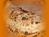 Passaggio 6 Chiudere l'impasto su se stesso .Sigillare bene le estremità confezionando cosí il calzone a forma di mezzaluna .