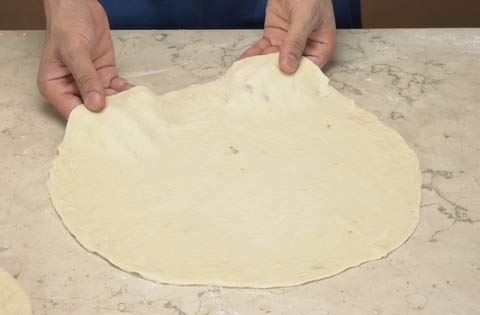 Passaggio 3 Una volta che l'impasto è lievitato ,stendete ogni singolo panetto dando una forma di disco.
