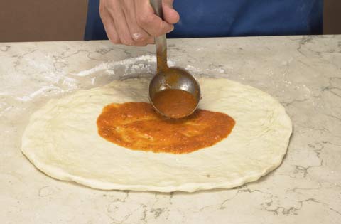 Passaggio 4 Mettere al centro del disco la salsa di pomodoro .