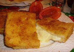 Preparate una padella per friggere con abbondante olio, friggete il pane fino a che non dora da una parte, quindi rigirate e friggete dall’altro lato fino a che la mozzarella risulterà fondente.