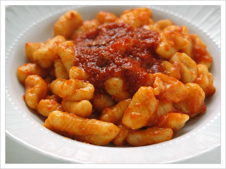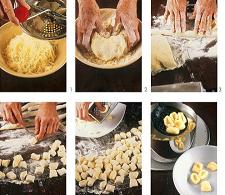 Schiacciamo 3-4 belle patate cotte e spelate, saliamo e poco per volta aggiungiamo la farina, impastando con le mani fino ad ottenere un impasto morbido ed uniforme. Ricaviamo dall’impasto, dividendolo in parti uguali, delle palline che allungheremo con le dita fino ad ottenere delle bacchette dello spessore di un grissino che infarineremo bene prima di tagliarle a tocchetti. Arrotoliamo leggermente i gnocchetti nella farina prima di disporli senza sovrapporli su una teglia.